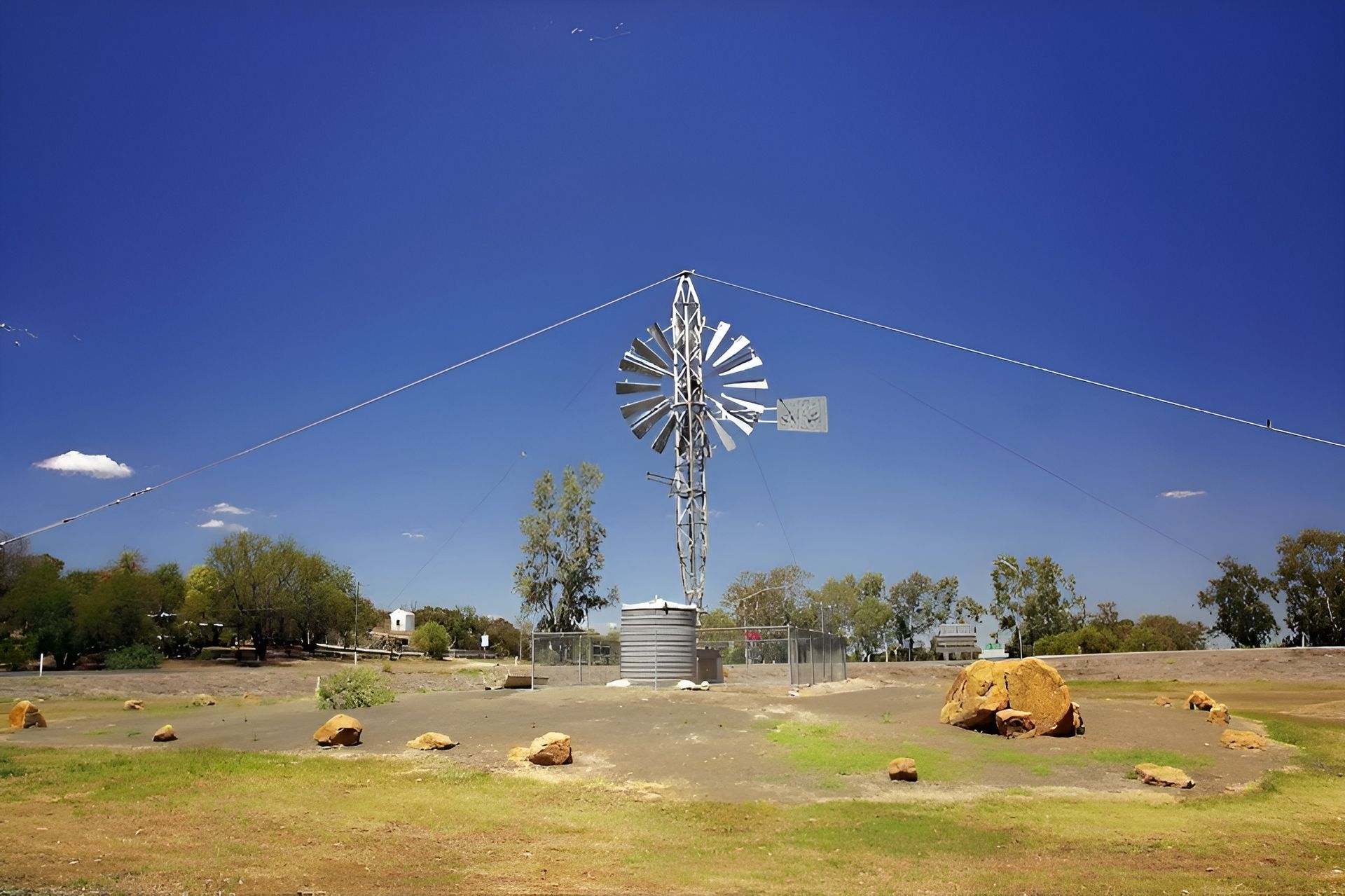 A standout landmark is the rare Steel Wings windmill near the river — one of only two still working in the world. Built in the early 1900s, its unique design features a fan spinning inside a fully pivoting steel frame. It’s a striking symbol of Taroom’s rich agricultural and pioneering history.